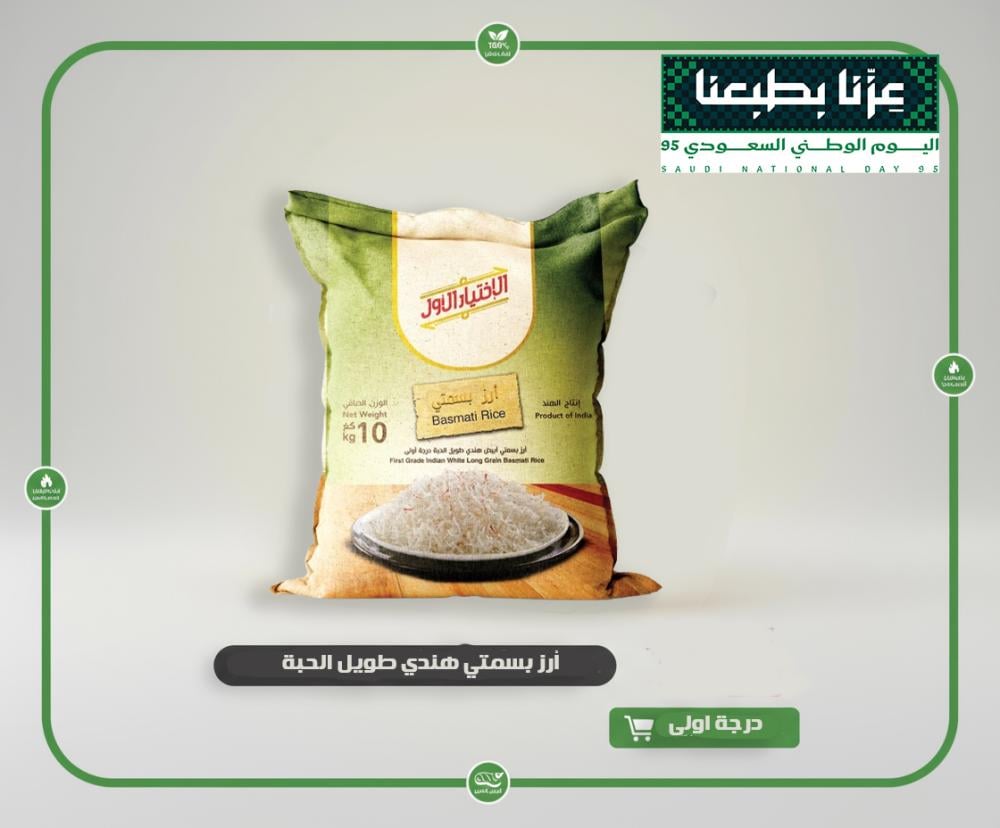 أرز "الاختيار الأول" هو أرز بسمتي هندي طويل الحبة ودرجة أولى، مما يعني أنه يأتي من أفضل مناطق زراعة الأرز البسمتي في العالم. هذا يضمن الحصول على الأرز بأصالته وجودته الفائقة، والتي تتجلى في: